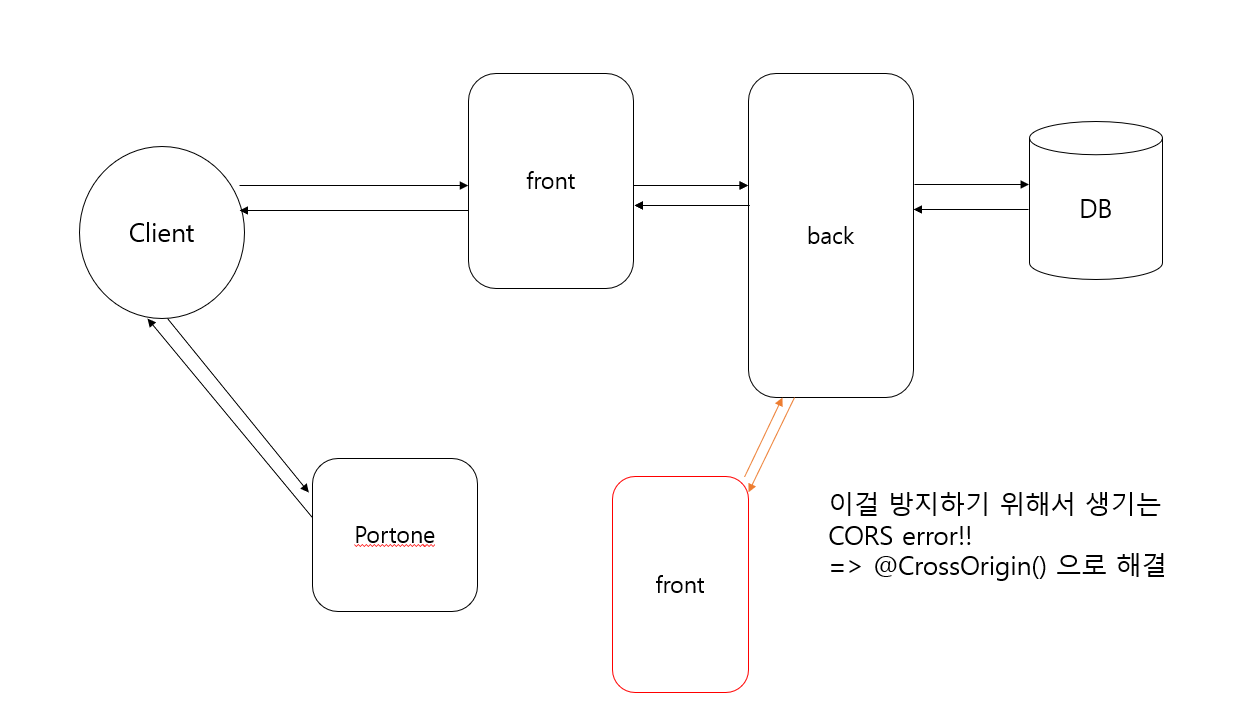 ์ด ๋ฌธ์ ๋ @CrossOrigin() ์ผ๋ก ํ์ฉํ ํ๋ก ํธ ์๋ฒ๋ฅผ ์ง์ ํจ์ผ๋ก์จ ํด๊ฒฐํ ์ ์๋ค.